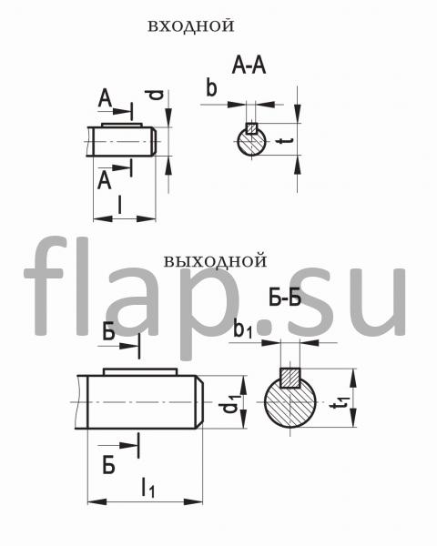 | Типоразмер редуктора | d | l | b | t | d1 | l1 | b1 | t1 |