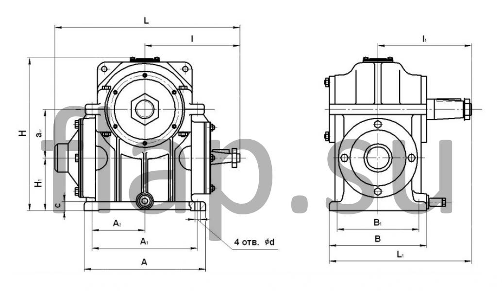 | Типоразмер | L | L1 | l | l1 | H | H1 | d | B | B1 | c | A | A1 | A2 |
