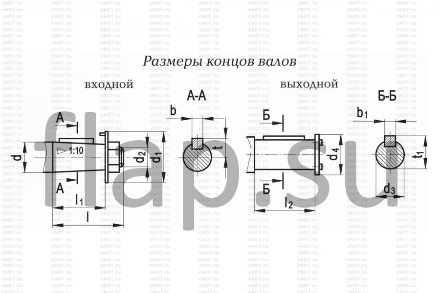 | Типоразмер редуктора | d | d1 | d2 | l | l1 | b | t | d3 | d4 | l2 | b1 | t1 |